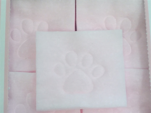 猫の肉球が型押しされたコットンです。